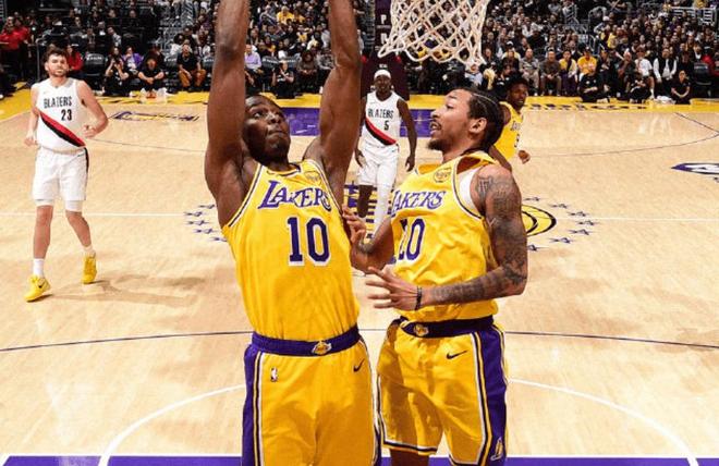 本场比赛,双方在首发阵容上面,湖人这边派出的是里夫斯、八村塁、范德比尔特、拉拉维亚和艾顿,开拓者这边派出的是霍勒迪、夏普、阿夫迪亚、卡马拉和克林根。